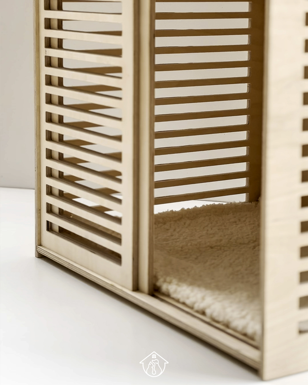 خانه حیوانات آسایش ، مخصوص سگ های کوچیک و آپارتمانی هست که داخل خونه زندگی میکنند. طراحی این خونه به گونه ای هست که بتونه بیرون و صاحبش رو ببینه که حس آسایش داشته باشه و در عین حال وقتی نیاز هست که داخل خونه بمونه و بیرون نیاد ، بتونیم با درب کشویی خونه یک محوطه بسته رو واسش ایجاد کنیم.